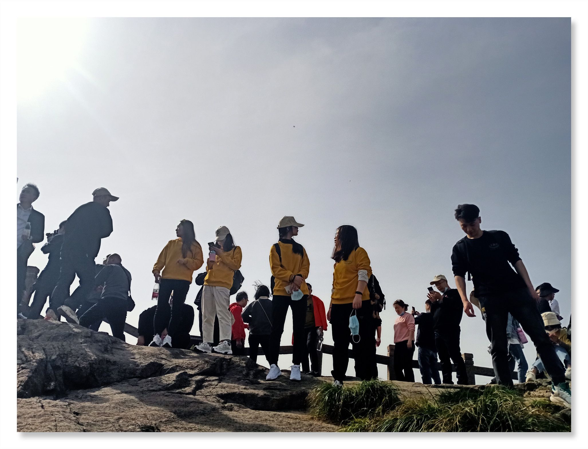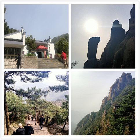行程第一天,大家在導(dǎo)游的帶領(lǐng)下游覽了花臺(tái)景區(qū)。景區(qū)內(nèi)風(fēng)光壯美,景色綺麗,以奇峰怪石、云海霧凇、花的海洋而著稱,素有“靈山九華,美在花臺(tái)”的說(shuō)法。景區(qū)內(nèi)有我國(guó)品種集中的稀有高山杜鵑花,紅、黃、白、紫等爭(zhēng)相綻放,爭(zhēng)奇斗艷,鑲嵌在山野絕壁中,宛若“天街花市”,儼然一副華美的山水畫。然而山上這個(gè)時(shí)節(jié)的杜鵑花仍是花骨朵兒,大家并未得觀百花爭(zhēng)艷的絕美景色。不過(guò)山上奇特的地質(zhì)地貌,神奇地構(gòu)成了九華山著名的“天然睡佛”奇觀。大家圍繞睡佛時(shí)而奮力攀登、時(shí)而漫步臨山棧道。登臨花臺(tái)頂,一覽九華全景,更可以“親近睡佛,聆聽(tīng)佛音”,與神奇的“睡佛”零距離接觸,得大佛護(hù)持、倍感靈氣。